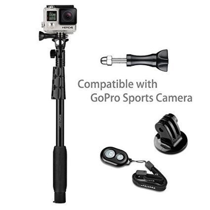 Rated as number one bestseller on Amazon, the Fugetek professional GoPro stick is designed with functionality, performance, and user-friendliness in mind. It sports a black, all luxurious aluminium design that doesn’t look or feel anything like cheap. The highly removable and adjustable mounts will guarantee you full compatibility for your phone as well as other devices. To that effect, it has two interchangeable mounts all the way from 4.2 inches to 49 inches. The fact that it can be locked securely means that you can now kiss goodbye to phone slippages and breakages. Additionally, it has a fast connecting Bluetooth remote that is compatible with all devices from iPhone, Android, GoPro and digital cameras.